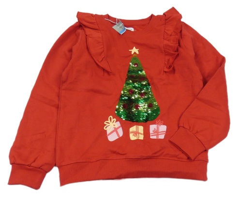 Nové - Červená mikina so stromkem z překlápěcích flitrů a darčekmi Sinsay