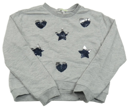 Sivá melírovaná mikina s hviezdami a srdíčky z překlápěcích flitrů Vertbaudet