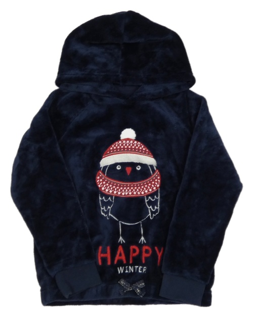 Tmavomodrá plyšová mikina s tučňáčkem a kapucňou OKaïdi
