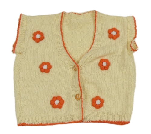 Smetanovo-oranžová svetrová vesta s kvietkami