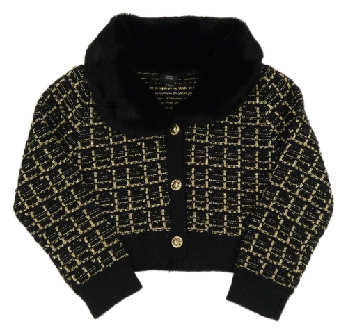 Čierno-zlatý kockovaný prepínaci crop sveter s golierikom s kožešinou River Island