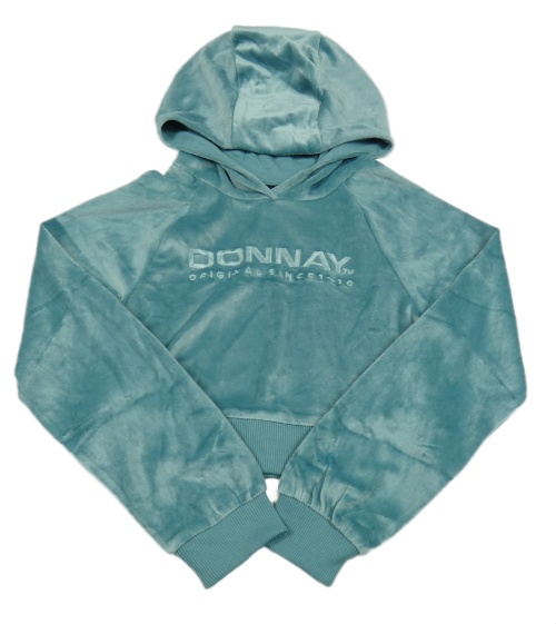 Zelená zamatová crop mikina s logom a kapucňou Donnay