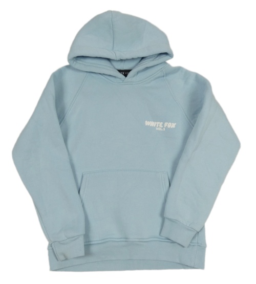 Svetlomodrá mikina s nápismi a kapucňou