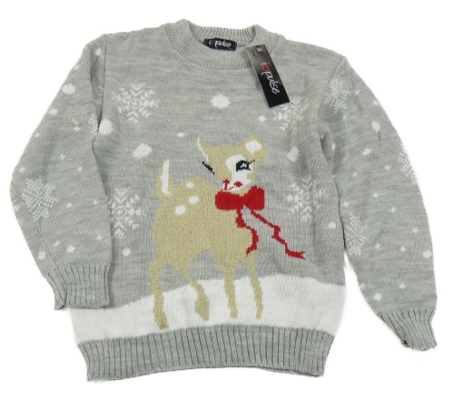 Nové - sivý vzorovaný vianočný sveter so sobom