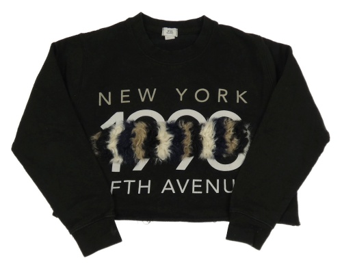 Čierna crop mikina s nápisom a chlupatým prvkem River Island