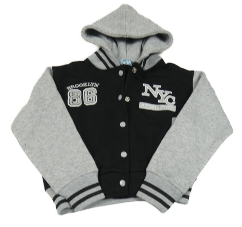 Čierno-sivá baseballová crop tepláková mikina s písmenky a číslom a pruhmi a kapucňou A2Z 4Kids