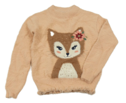 Broskvový chlpatý sveter s líškou s flitrami C&A