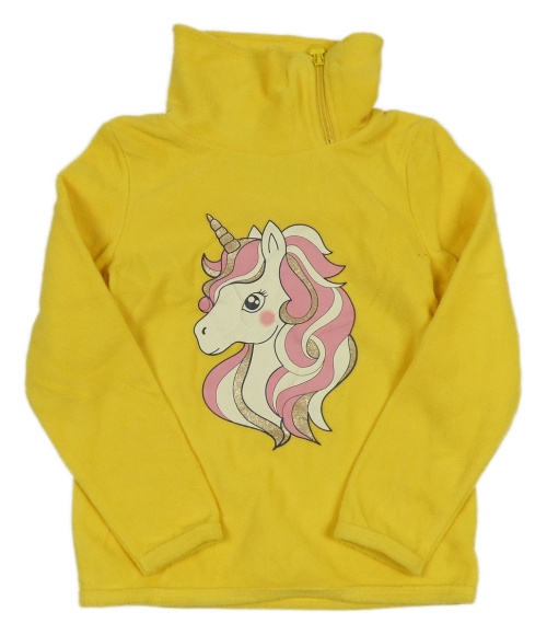 Tmavožltá fleecová mikina s jednorožcom a komínovým golierom C&A