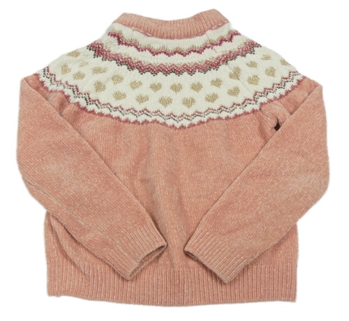 Ružovo-smotanový žinylkový sveter so srdiečkami a vzorom C&A