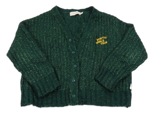 Smaragdový melírovaný rebrovaný vlnený prepínaci oversize crop sveter s nápismi TINY COTTONS