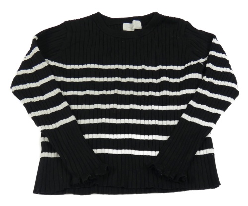 Čierno-biely pruhovaný rebrovaný crop sveter s volánikmi H&M