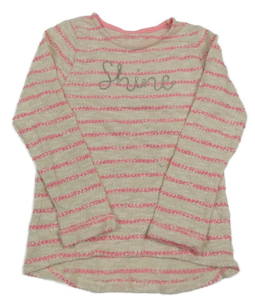 Béžovo-ružový pruhovaný sveter s nápise Nutmeg