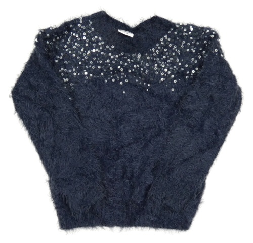 Tmavomodrý chlpatý sveter s flitrami POCOPIANO