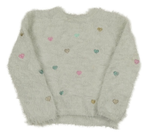 Bílošedý chlpatý sveter s výšivkami srdíček H&M