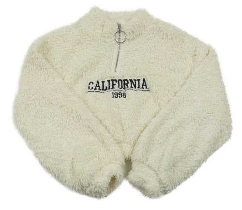 Krémová chlpatá crop mikina s nápisom Shein