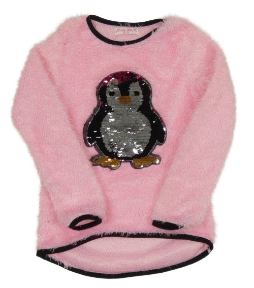 Ružová chlpatá trblietavá mikina s tučňákem z flitrů