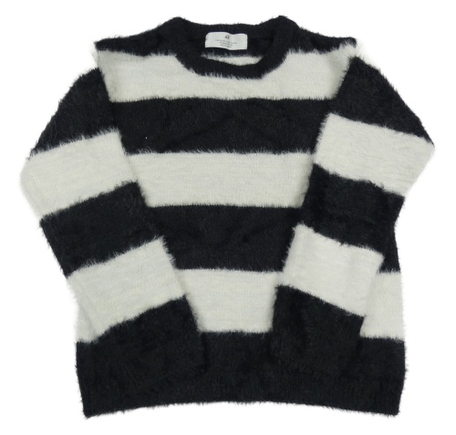 Čierno-biely pruhovaný chlpatý sveter H&M