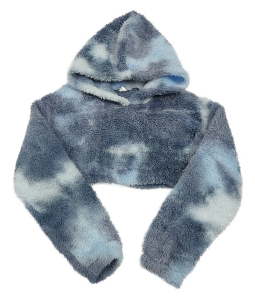 Šedomodro-světlemodro-biela batikovaná plyšová crop mikina s kapucňou Shein
