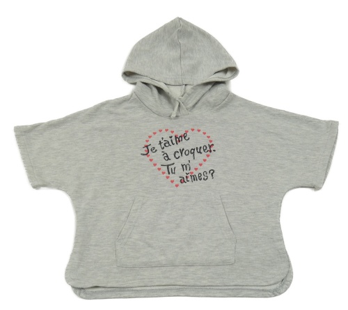 Sivá crop melírovaná mikina s nápismi a kapucňou