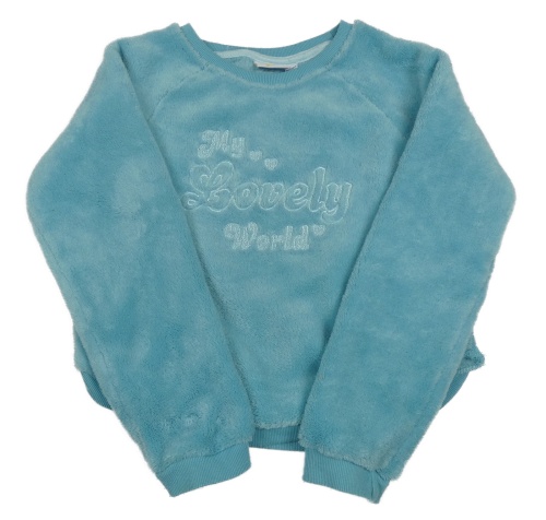 Azurová plyšová mikina s nápismi Kids