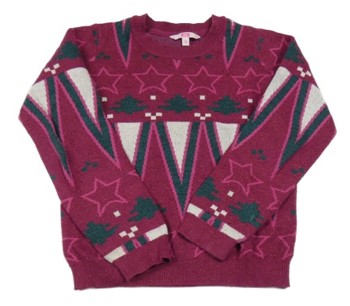 Vínovo-tmavozelený vzorovaný trblietavý sveter WE