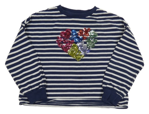 Tmavomodro-biela pruhovaná mikina so srdíčkem z flitrů Next