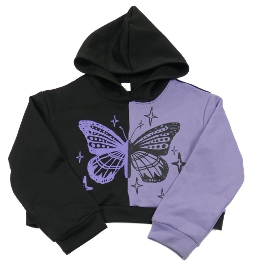 Čierno-fialová športová crop mikina s motýlkom a kapucňou Shein
