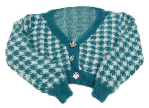 Petrolehovo-biele vzorované pletené bolerko