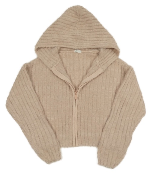 Svetloružový rebrovaný chlpatý crop sveter s kapucňou Next