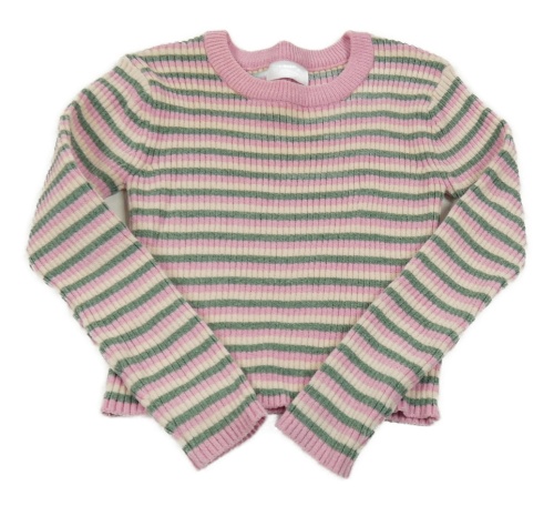 Ružovo-pudrovo-zelený pruhovaný žinylkový crop sveter Primark