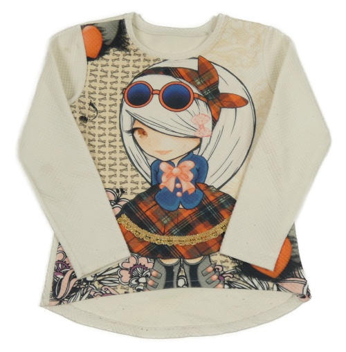 Smetanovo-marhuľová prešívaná dlhá mikina s dívkou