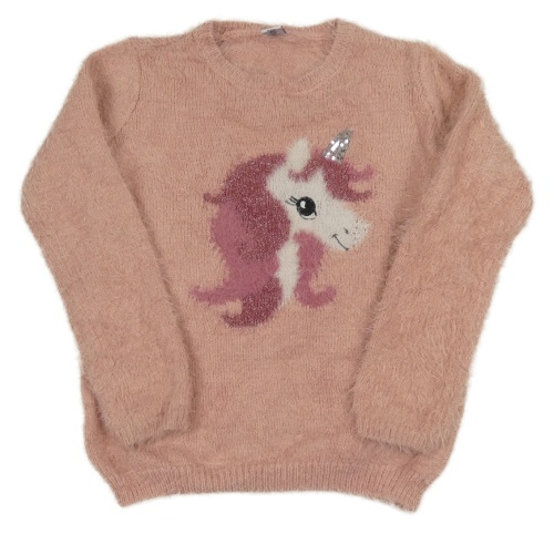 Svetloružový chlpatý sveter s jednorožcom Dopodopo