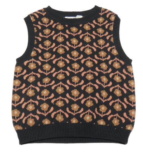 Antracitovo-lososová pletená vesta s kvietkami H&M