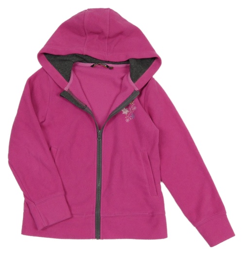 Fuchsiová fleecová prepínaci mikina s vločkami a kapucňou