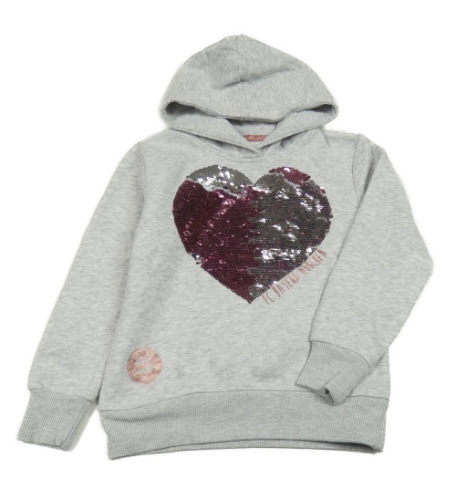 Svetlosivá melírovaná mikina so srdíčkem z flitrů a kapucňou
