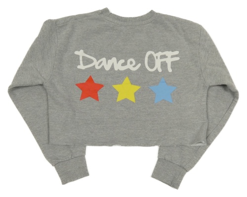 Sivá melírovaná crop mikina s písmenky a nápisom a hviezdičkami SF
