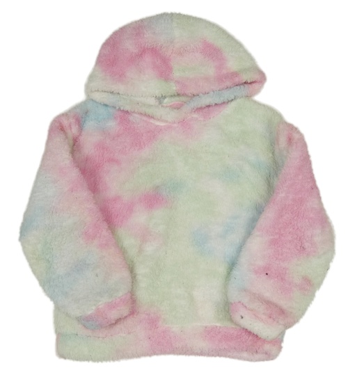 Mátovo-ružovo-svetlomodrá batikovaná huňatá mikina s kapucňou SHEIN