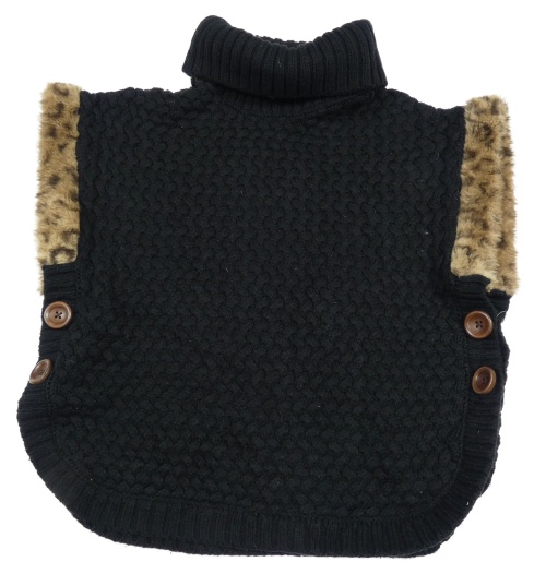 Čierne vzorované pletené pončo s rolákom