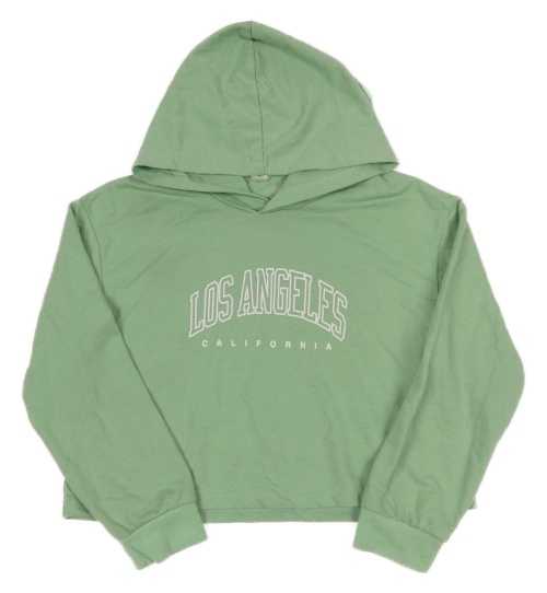 Olivová crop mikina s nápismi a kapucňou