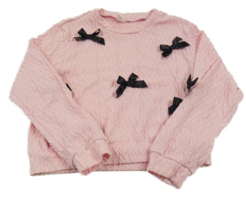 Světelrůžová vzorovaná crop mikina s černými mašličkami shein