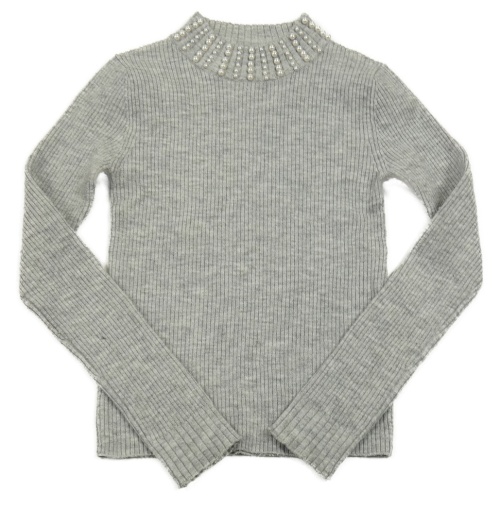 Sivý rebrovaný sveter s perlami River Island
