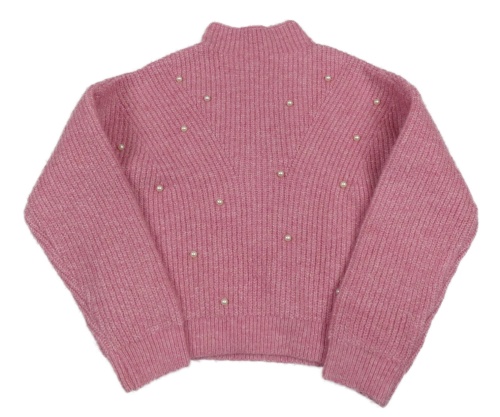 Ružový melírovaný rebrovaný svetrový oversize crop rolák s perlami V BY VERY