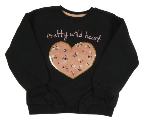 Čierna mikina s květovaným srdcem s flitrami a volánikmi C&A