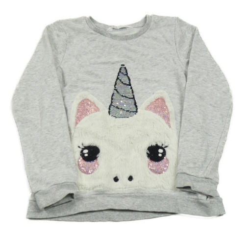 Sivá melírovaná mikina s jednorožcom s překlápěcími flitre H&M