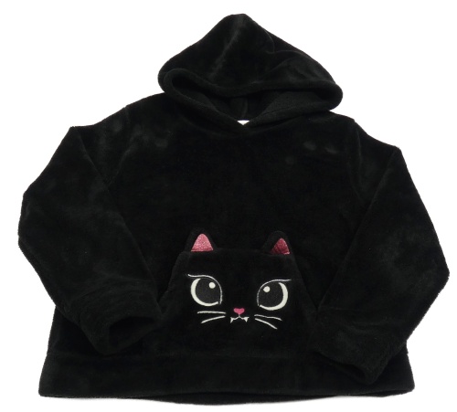 Čierna chlpatá mikina s mačkou a kapucňou H&M