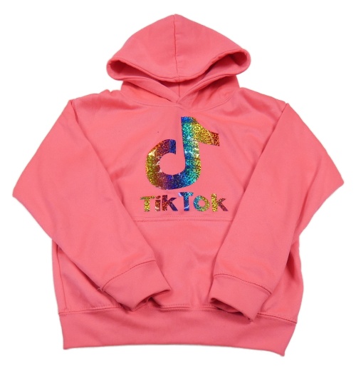 Neónově ružová mikina s logem TikTok a kapucňou AWDis