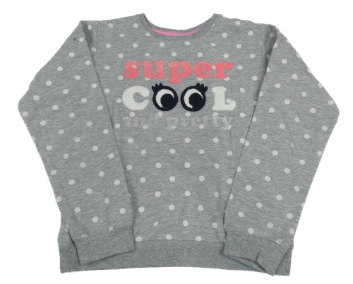 Sivo-ružovo-biela mikina s bodkami a nápisom COOL CLUB