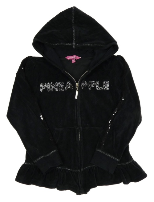 Čierna zamatová prepínaci mikina s nápisem z kamínků a kapucňou Pineapple