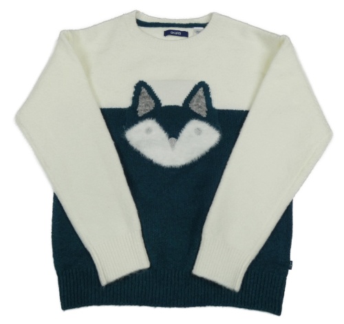 Smetanovo-tmavozelený sveter s líškou