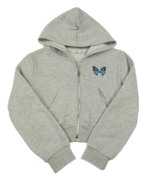 Sivá melírovaná prepínaci crop mikina s motýlom a kapucňou Shein
